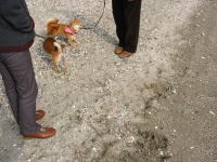 マイルちゃんとあずきのお散歩。 何とこの朝、アサリをめぐってライバルに・・・? 「私が先に見つけたのよ」 byあずき 「私は、グルメなのよ」 byマイルちゃん さてこの結果は・・・?? でもマイルちゃん大好きあずきなのです。 |