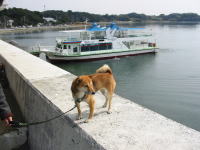 みんなとお別れした後、お土産店の前でハイ ポーズ!! 後の船は、遊覧船らしいです。 |