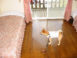 夜中おとなしく寝てくれたあずき。私達も熟睡して少し早目に起きて、カーテンを開けると