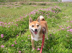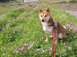 | レンゲ畑のあずき。気持ち良さそう!! | 誰か会いに来てくれるのかな? |