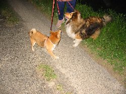 | 叔母さんが気になって二人共散歩になってません。 | 田舎の空気は新鮮で気持ちいいよ〜 |