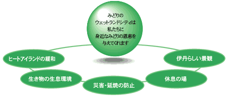 置づけ、自然が創り出す「みどりのウェットランドシティ」を目指して、21世紀の子どもたちに継承できるよう「伊丹市みどりの基本計画」を策定しました。 |