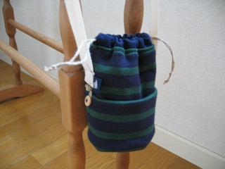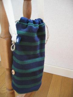 NIMESのボーダーを使ってペットボトルホルダーをつくりました。 小さいボトルの時も使えるように、ボタンを使ってサイズを調節できるようにしました。