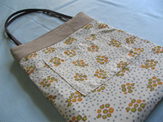 内布はオオデマリという生地です。この生地なら外布のシンプルさを邪魔せず、かつ内布は内布でかわいさをアピールできるのではないかと…。
