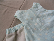 ブラウスの前側には飾りのポケットをつけてみました。後ろ側のあき部分はホックで止めるようにしています。