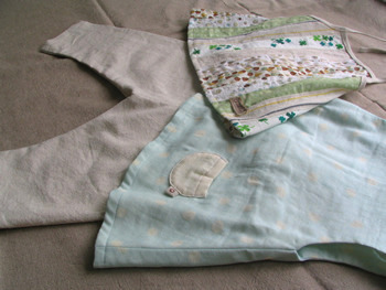 またまた出産祝いのプレゼントです。ワンピースにしようか迷いましたが、今回はブラウス2点とパンツのセットにしてみました。