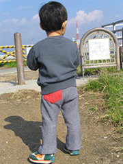 「あ、このパンツ…。」と思われた方もいらっしゃるかもしれませんね。そうです!No.019で作ったものと同じ細ボーダーパンツです。 やっぱり気に入っていたので同じものを作ってしまいました。