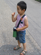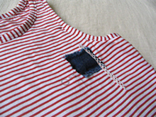 相変わらずわけのわかんない飾りをつけてます。中に綿を入れた、ふっくらデニムの上からレースを少々。