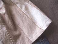 スカートは、はじめは手縫いでいびつなステッチを数本入れようかと考えていましたが、試してみるとちょっとしっくりこなかったので、前後とも端の方に1本だけジグザグステッチを入れることにしました。
