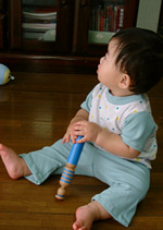 これが襟違いのTシャツ。袖と襟に使ったものと同じ生地ででズボンも作成。でも全くと言っていい程「出来たー!」という満足感がありません。あんまり着せてみたくもならない。やっぱり「シマモカパンツ」でも書きましたが、こういう淡いパステルカラー調の服って私好みではないようです。なので「全然似合ってない」ってよけいに思ってしまいます。