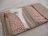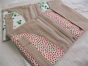 これは、以前RickRackさんのおまけでいただいた「2ポケットポーチの作り方」をアレンジして作ったもの。