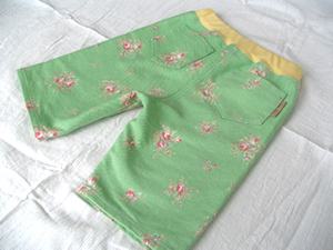 本当はフラップパンツにするつもりだったのですが、「さて作ろう。」と、やっとこさ思えた時に、カシオにちょうど良いサイズの型紙がなかったので、結局何の飾りもない七分丈のパンツにしました。なんてことない普通