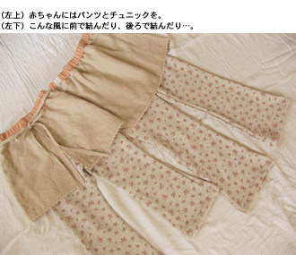 赤ちゃんにはお姉ちゃん達とお揃いの生地でお気に入りパンツを、そして大好きな生地でチュニックを作ってみました。