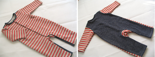 ずいぶん昔に作ったものなのですが、赤ちゃん誕生のお祝いに、カバーオールを作ってみました。