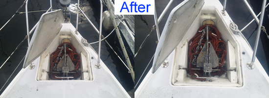 | ジブを巻く装置(ジブファーラー)と船首の落水防止柵(バウパルピット)新替 | |||