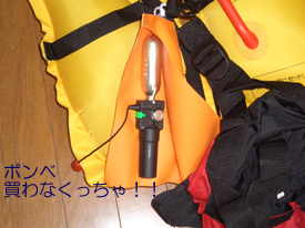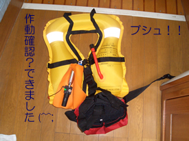 | 台風一過、ヨットに乗船しに行きました。 さて、ライフジャケットを着けようとして、キャビンに置いていたライフジャケットを取ろうとしたら、手が滑ってソファの上に落としてしまった。 突然、「プシュッ!」という音がした。 ライフジャケットが、膨れました。何ということだ!今日は、使えないじゃないか。 でもまぁ、ちゃんと本当に作動することが確認出来たのは良かったんだ、と思おう。 それにしても、ソファの上にぽとんと落としただけなのに、何で作動するねん!?ボンベを買わないといけないなぁ。 予定外の痛い出費だ。 ということで、本日は昔ながらの救命胴衣を着て海へ。 あぁ、やっぱり暑い。 |