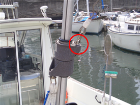 | 少し前に、マストトップのウィンデックスを見上げると、Vの字の左側のみがヒクヒクとぐらついていることに気がついた。 マリーナに相談したところ、『壊れているだろう。』とのことだった。