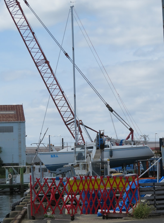 あるとき船底塗装完了後のヨットの状態を見に行くと、桟橋の配置が変わっており、
