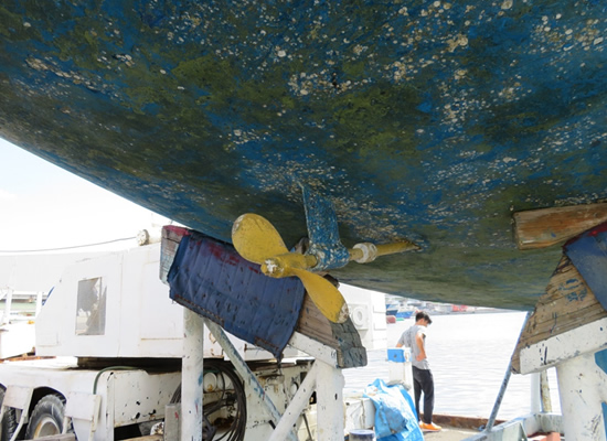 | 船底塗装前(「プロペラ塗装は、2万円でやります!」とサウスポイント談) | |||