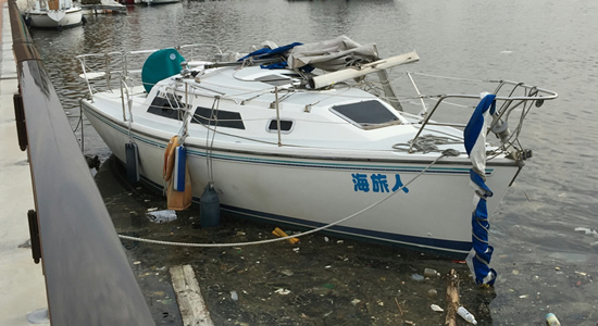 台風21号(平成30年9月4日に襲来)による損傷箇所は復旧され、またセイルはメイン・ジブともに新品に替わった。
