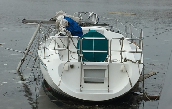 | 我々のヨットは、沈没・座礁は免れたものの、マストは折れました。 マストは折れたものの、良く無事で浮いていたと褒めたい。 | |||