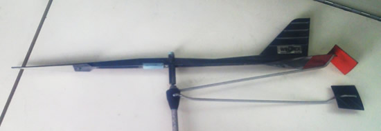 平成26年7月15日から船底・プロペラ塗装を行うので、その時にウィンデックスを交換することにした。 下の写真は、マストトップから取り外された壊れたウィンデックスで、赤い四角い板が見えている方の棒が折れかけていたようだ。 |