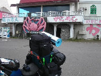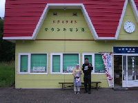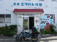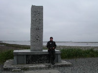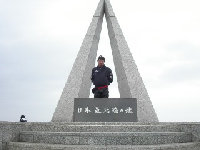 最北端に到着。定番の写真を撮る。ここで足寄で会った湘南のFTR君と再会。この後、雨の中一緒にうに丼屋を目指して走る。このウニ丼は3000円 雨がひどく、15時にR・Hみどり湯に逃げ込む。 |