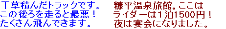富良野のR・Hで一緒だった 東京のCB400君と白樺で 再会!一緒に熊の湯に行く。 |