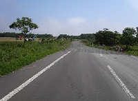 この日は移動日と決め一気に宗谷を 目指す。樹海の中を走る三国峠での 一枚。ここで神戸の忍者さんと話して たら昼になりました。進まない。。。 |