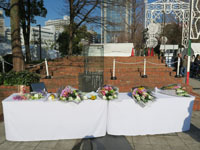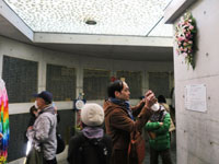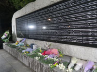 | 東遊園地の次は、人と防災未来センターです。長距離のメモリアルウォークが中止となり、私が参加できるのは、この「1.17のつどい」しかありません。本当はこのセンターでボランティアをすることになっている曜日でしたが、これだけは参加したくて、休んでここに来ました。国や県の関係者として声のかかる者ではありませんが、私自身が震災を改めて思い起こすために参加したのです。 開会の言葉があり、黙とう。これまでに何度も「黙とう」の機会があり、何度も黙とうしましたが、必ず「震災の日」を思い出してしまいます。31年の年月が経っても、やはり忘れることのできない日ではないでしょうか。 そして、いよいよ「なぎさ小学校児童」による「しあわせ運べるように」の演奏です。私の場所は、子どもたちから離れていたのですが、なんとか顔を見ることが出来ました。子どもと一緒に私も歌います。やはり涙は出てきます。あの日を思い出してしまうからでしょうね。 今までは献花するために長い時間待っていましたが、今回はこの時間に先に人と防災未来センターと周辺の施設を巡ります。あまり見ていなかったテントもあり「1月17日」を考えながら廻りました。そして、最後に献花です。献花はわずかな時間でしたが、亡くなられた方々へのお祈りです。 これで、今年のメモリアルデーは終了します。数が減ったとは言え、参加していない催しも多くあります。それでも、私に震災を伝えることを伝えてくれた催しだけは、参加を続けたいと思います。 |