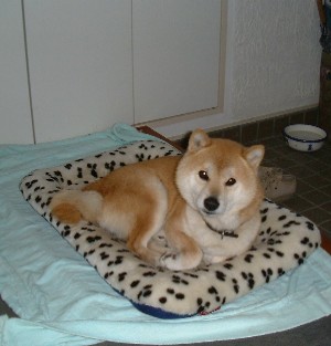 玄関に僕のマットを引いてもらってるので、ベッドはそこなんだけど、