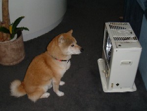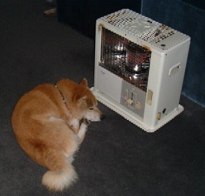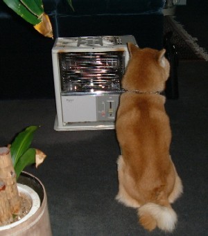 玄関も冷えるから、僕はストーブの前で暖を取っているのだ☆