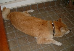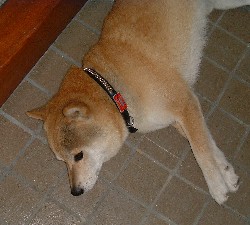 家の中に入れてもらって、一時の涼を得る・・・が、 あんまり風はとおらんなぁ〜・・・。 でも、なんとなぁ〜く涼しい気がする。 我ももう若くないんだから、気軽に家に入れてもらいたいものだ・・・(^^; 大のTOPへ
