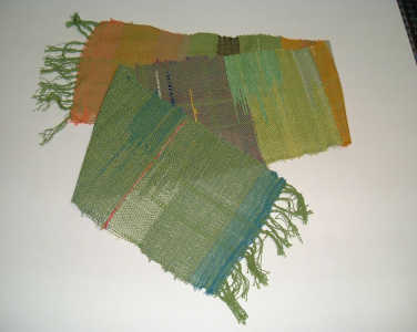 織り機に縦糸からすべて自分で張って、作品に仕上げました。