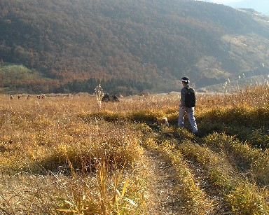 登り始めてしばらくはススキの原っぱの中を登っていいって