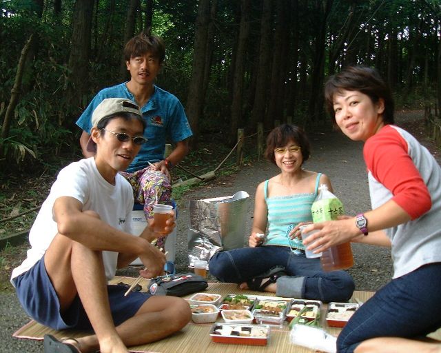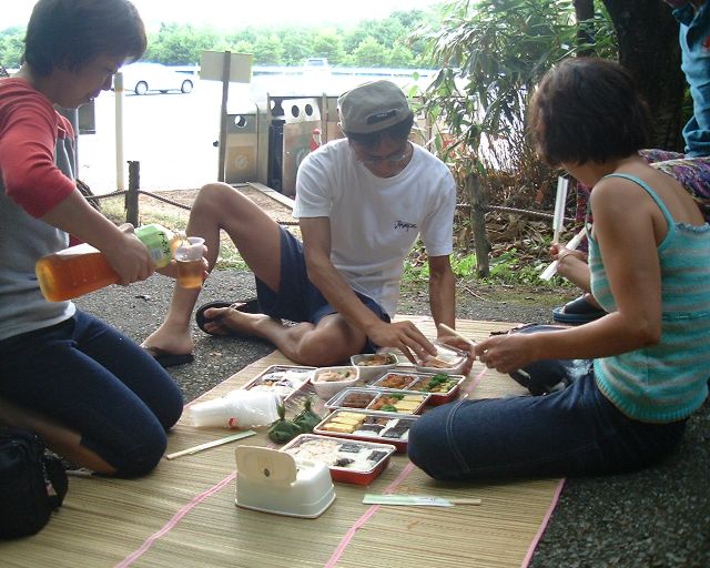 角度を変えてはいポーズ!! お弁当は河内さんの手作りです。みんなおいしそうにぱくぱく状態でした。