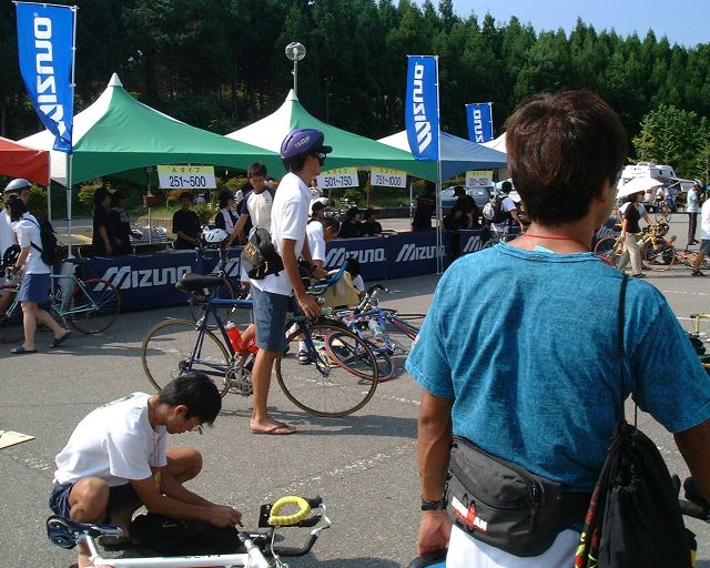 DHバー・・・。そう、まだ掛樋君はゼッケンシールと格闘していたのです(^^;) この後、車検も無事終わ
