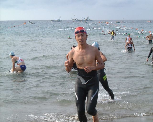 そうこうしているうちにスタートの時間が迫ってきました。ウェットスーツを着てちょっと海に浸かったら