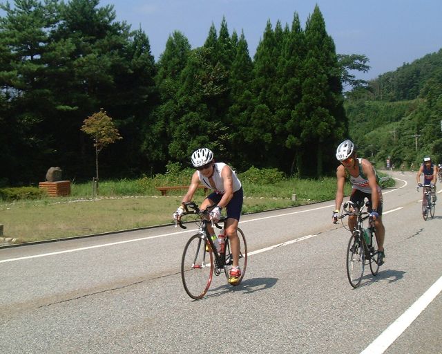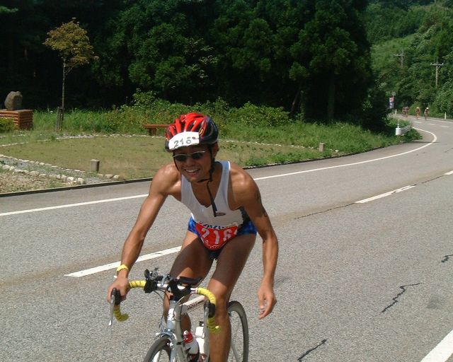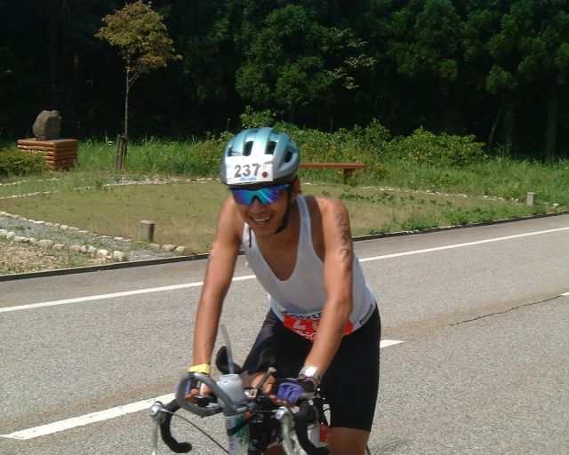 スイムが終了し、これからが正念場のバイクです。珠洲には山伏山(標高差約50m),木ノ浦(同約100m),大谷峠(同約250m)