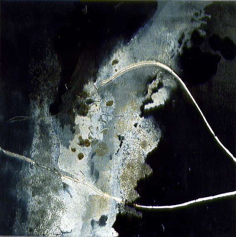 パネルに脱脂綿、アクリル絵具、珈琲粉末、墨汁
