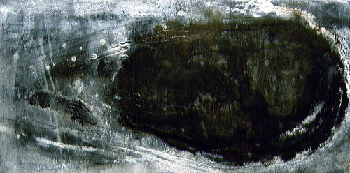 パネルに脱脂綿、アクリル絵具、珈琲粉末、墨汁、クレヨン