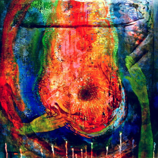 パネルにスタイロホーム・脱脂綿・ジェッソ、アクリル絵具