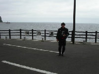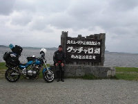 最北端に到着。定番の写真を撮る。ここで足寄で会った湘南のFTR君と再会。この後、雨の中一緒にうに丼屋を目指して走る。このウニ丼は3000円 雨がひどく、15時にR・Hみどり湯に逃げ込む。 |