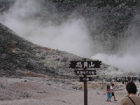 硫黄山 臭い! 名物は温泉卵です。 私はトウモロコシを 食べました。何故? |