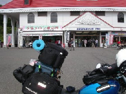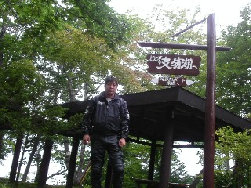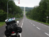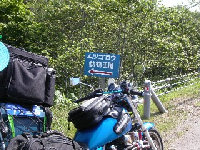 この日は移動日と決め一気に宗谷を 目指す。樹海の中を走る三国峠での 一枚。ここで神戸の忍者さんと話して たら昼になりました。進まない。。。 |