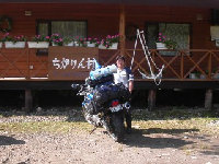 富良野のR・Hで一緒だった 東京のCB400君と白樺で 再会!一緒に熊の湯に行く。 |