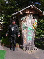 層雲峡から北見峠を抜け快調に走る。 80キロほど走った所でこの看板を見て入浴! 写真を撮ろうとした時・・無い!で往復160キロ の道をつるつるボディでもう一度走る事に・・。 |