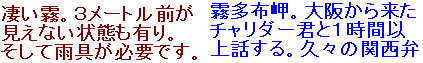 ムツゴロウ王国に到着 今年も見学不可能。。 霧の中来たのに残念。 |