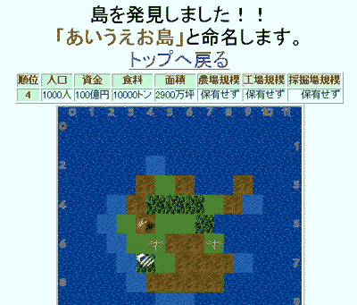 そして「トップへ戻る」を押してトップページに戻ると、あなたの島が登録されています。