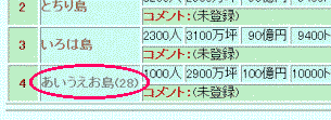 自分の島へ開発計画を入力しに行くには、島の名前をクリックしてもダメです。それではただの観光者扱いになってしまいます。